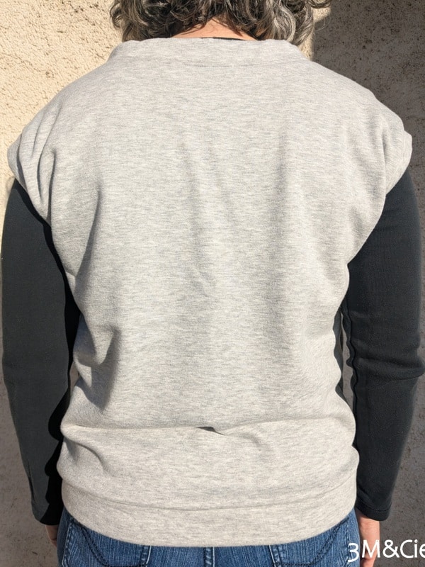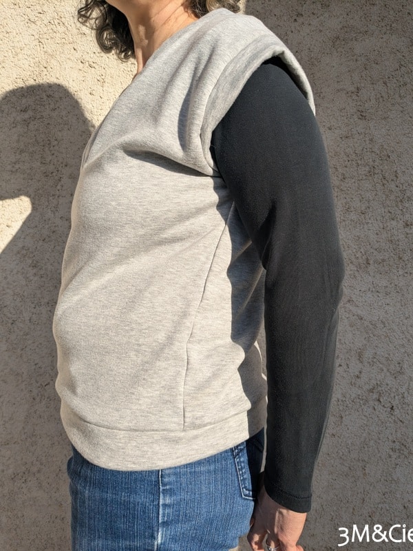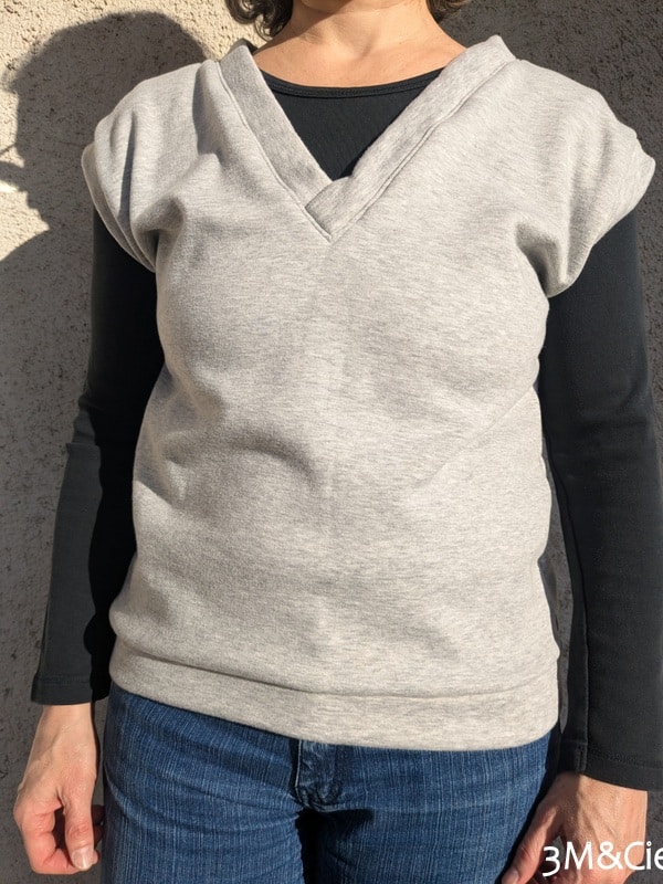 J’ai enfin cousu il y a quelques semaines le pull sans manche qui me manquait ! J’ai utilisé le patron gratuit de Ma petite Mercerie qui est un patron taille unique. J’ai effectué pas mal de modifications et il y en aurait encore à apporter pour qu’il tombe mieux notamment au niveau des emmanchures (réduire la longueur d’épaule et allonger la bande d’emmanchure qui tire beaucoup).