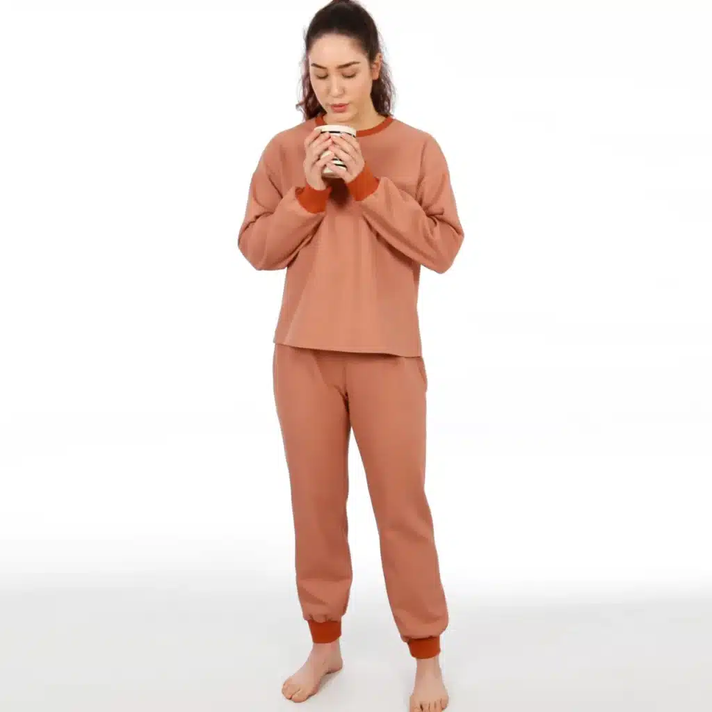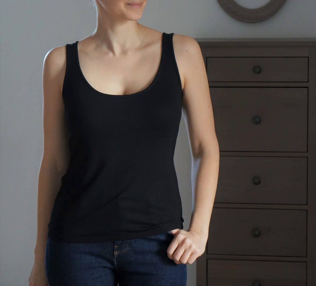 J’ai déjà cousu le T-shirt Josy, le pantalon de jogging Mme Nelli, le pyjama Mme Trixi, je viens de finir le débardeur Mme Luise et le sweat Alex est en cours. Un T-shirt Mme Tina est en projet !